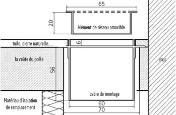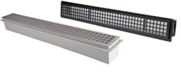 Grille d’air opaque grâce à des plaques de ventilation décalées, entièrement avec un cadre de montage en tôle d’acier galvanisée. En raison de la faible coupe transversale et des résistances accrues, le montage est recommandé seulement en combinaison avec d’autres grilles installées dans un poêle.