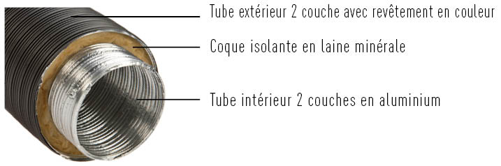 Les tuyaux flexibles isolants CB en aluminium minutieusement travaillés sont composés de 5 couches :